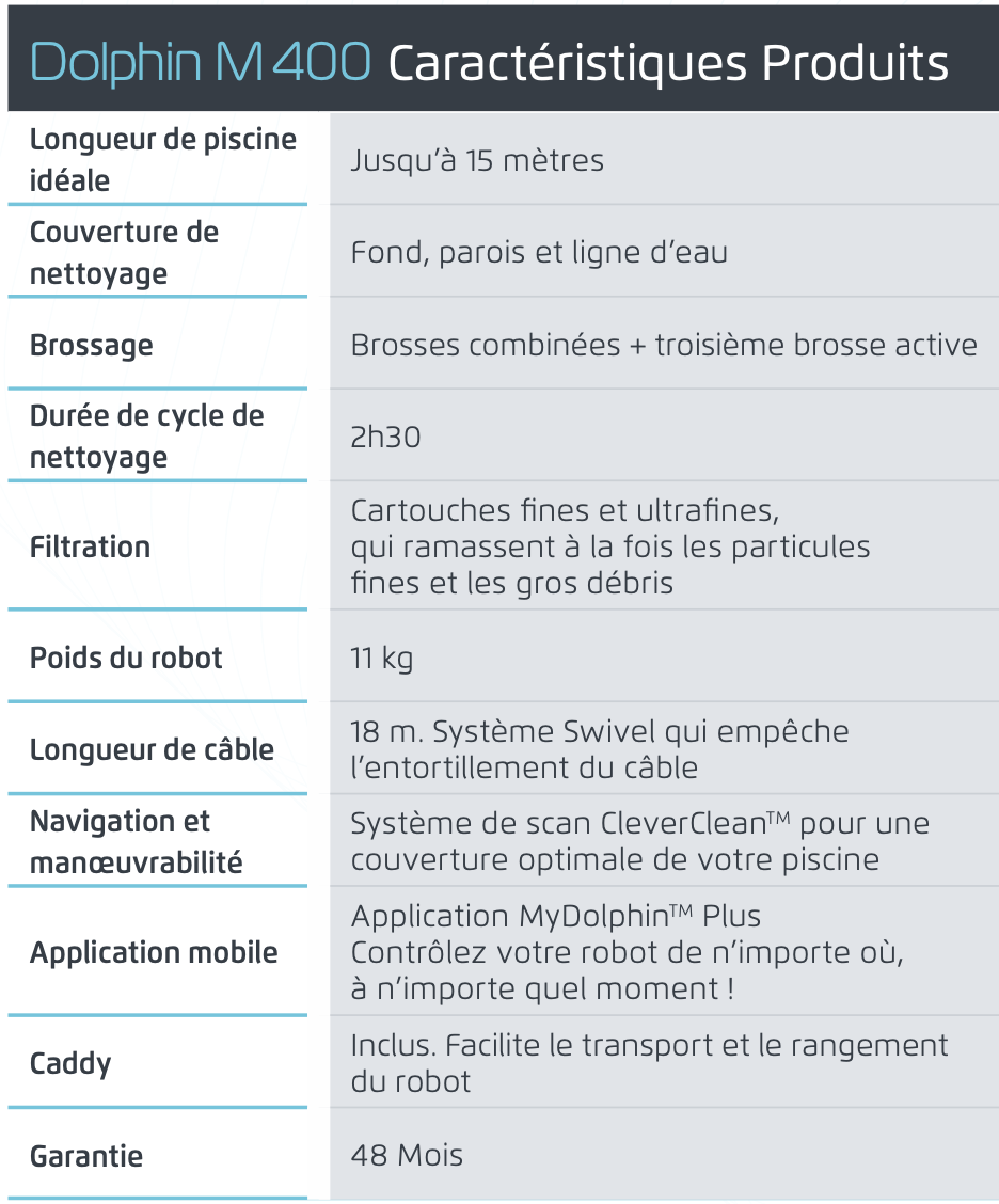 Doté de la nouvelle application mobile MyDolphinTM Plus, le M 400 est toujours connecté, vous permettant de contrôler votre robot de n’importe où, à n’importe quel moment !