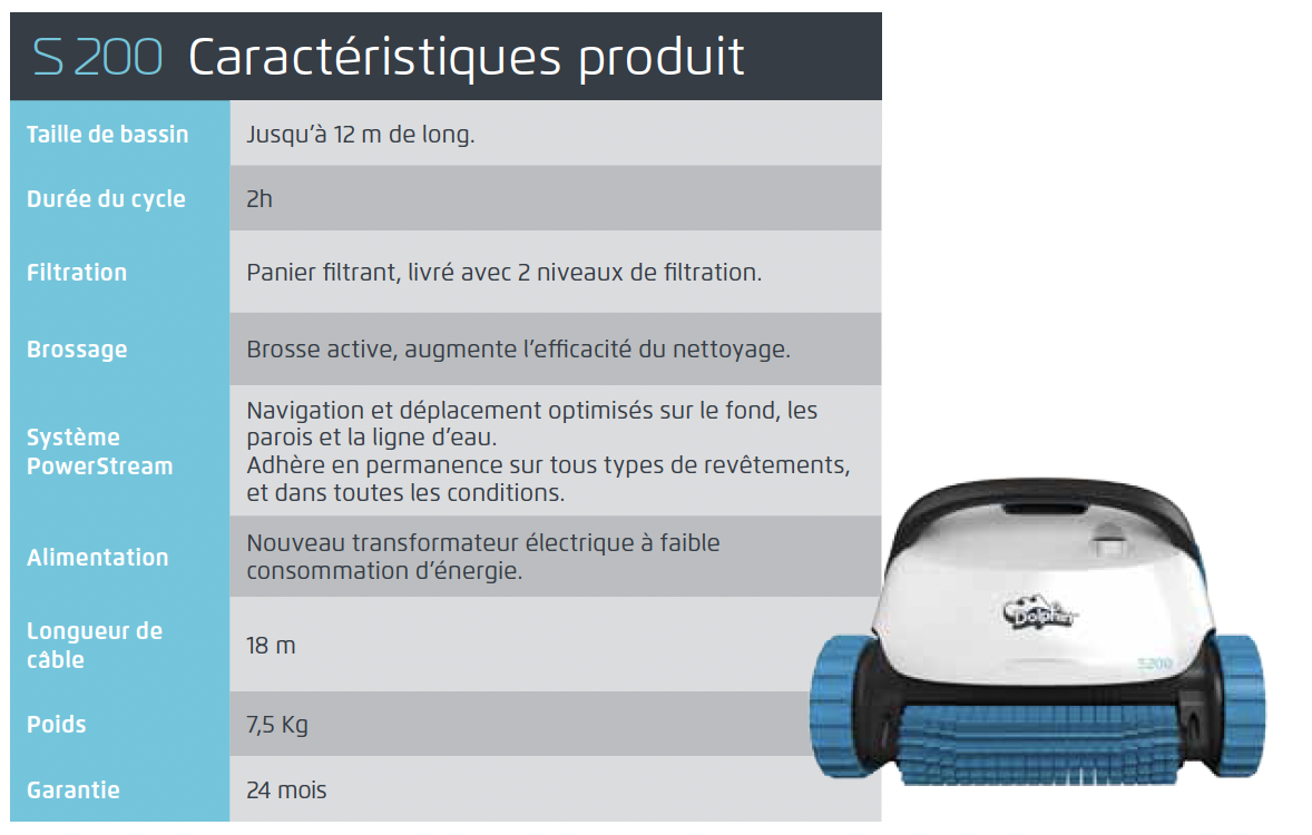 Le dolphin S200 est le robot fiable pour votre piscine.