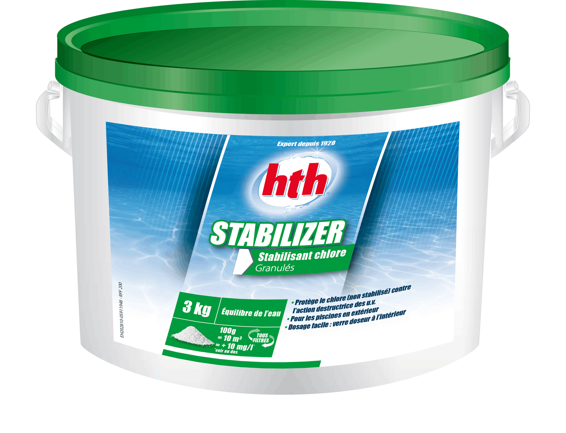 Par la suite, ajouter le produit, de façon régulière, en fonction des apports d’eau neuve, de manière à maintenir une teneur en stabilisant comprise entre 25 et 50 mg/l.Si une eau de piscine exposée aux rayons